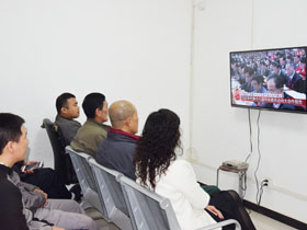 大會(huì)主席團(tuán)常務(wù)委員會(huì)成員在主席臺(tái)前排就座。>>